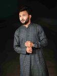 - The Panjabi appears to be made of a lightweight fabric, possibly cotton or a cotton-silk blend, offering both comfort and elegance.