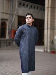 - The Panjabi appears to be made of a lightweight fabric, possibly cotton or a cotton-silk blend, offering both comfort and elegance.
