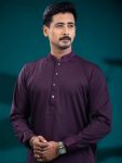 - The Panjabi is paired with off-white trousers, a classic choice for contrast and elegance.