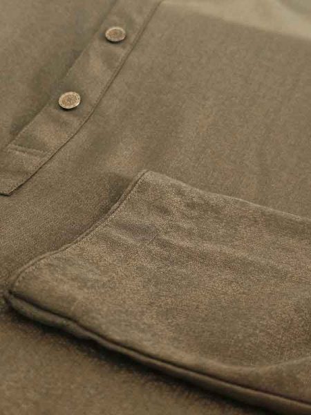 - It has a banded (Mandarin) collar, giving it a modern yet classic appeal.