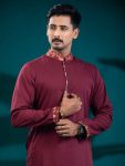 - The Panjabi appears to be made of a lightweight fabric, possibly cotton or a cotton-silk blend, offering both comfort and elegance.