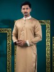 - The Panjabi appears to be made of a lightweight fabric, possibly cotton or a cotton-silk blend, offering both comfort and elegance.